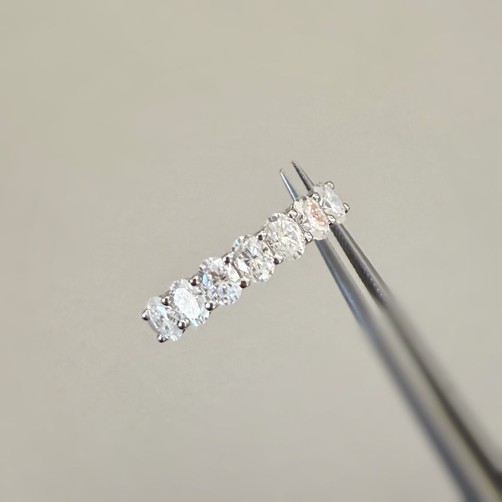 The Oval-cut Half Eternity Ring is a captivating piece. Its classic design and opulent materials make it ideal for commemorating significant moments such as engagements, weddings, and anniversaries or as a symbol of enduring love.